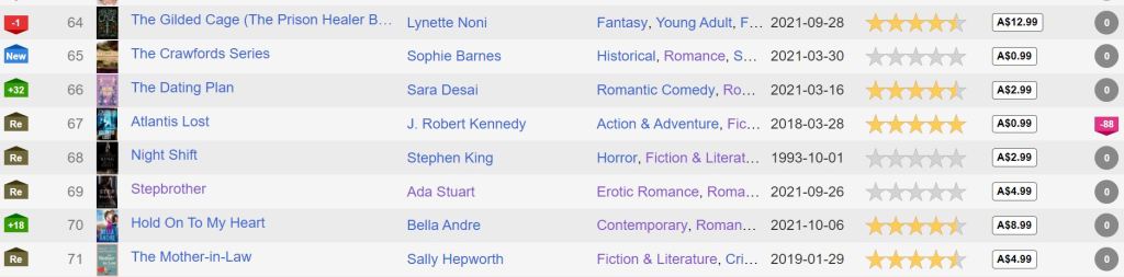 This is one of those moments, because never in my wildest fantasies could I ever have pictured one of my stories to be on the same bestseller list as Stephen King!!!! What are the odds for that? Gosh…