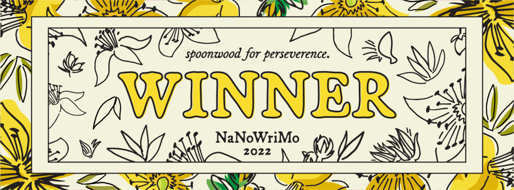 Banner from NaNoWriMo page (Our 2022 design is by Jackie Williams/Attawell Summer Creative with additional support from Alyssa Alarcón Santo, and was inspired by botanical textbooks and the symbolic meanings of flowers.)