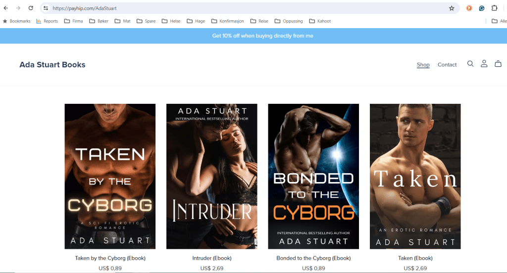If you’re interested in buying my books for 10% less than the usual price, you can buy my ebooks directly from my Payhip site. What you will get: